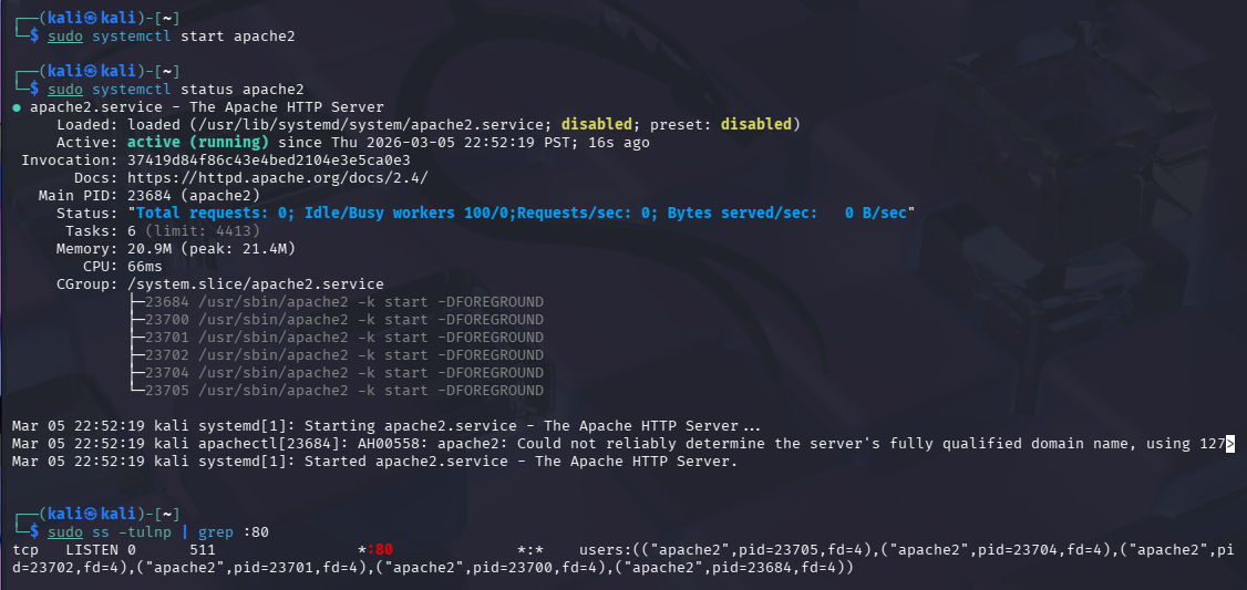 Mục tiêu: máy victim chạy Apache/Nginx trên port 80. Yêu cầu: