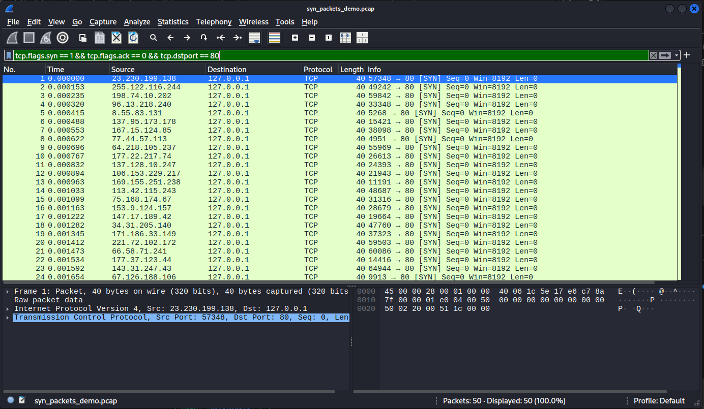 print("Created 50 TCP SYN packets and saved to syn_packets_demo.pcap")